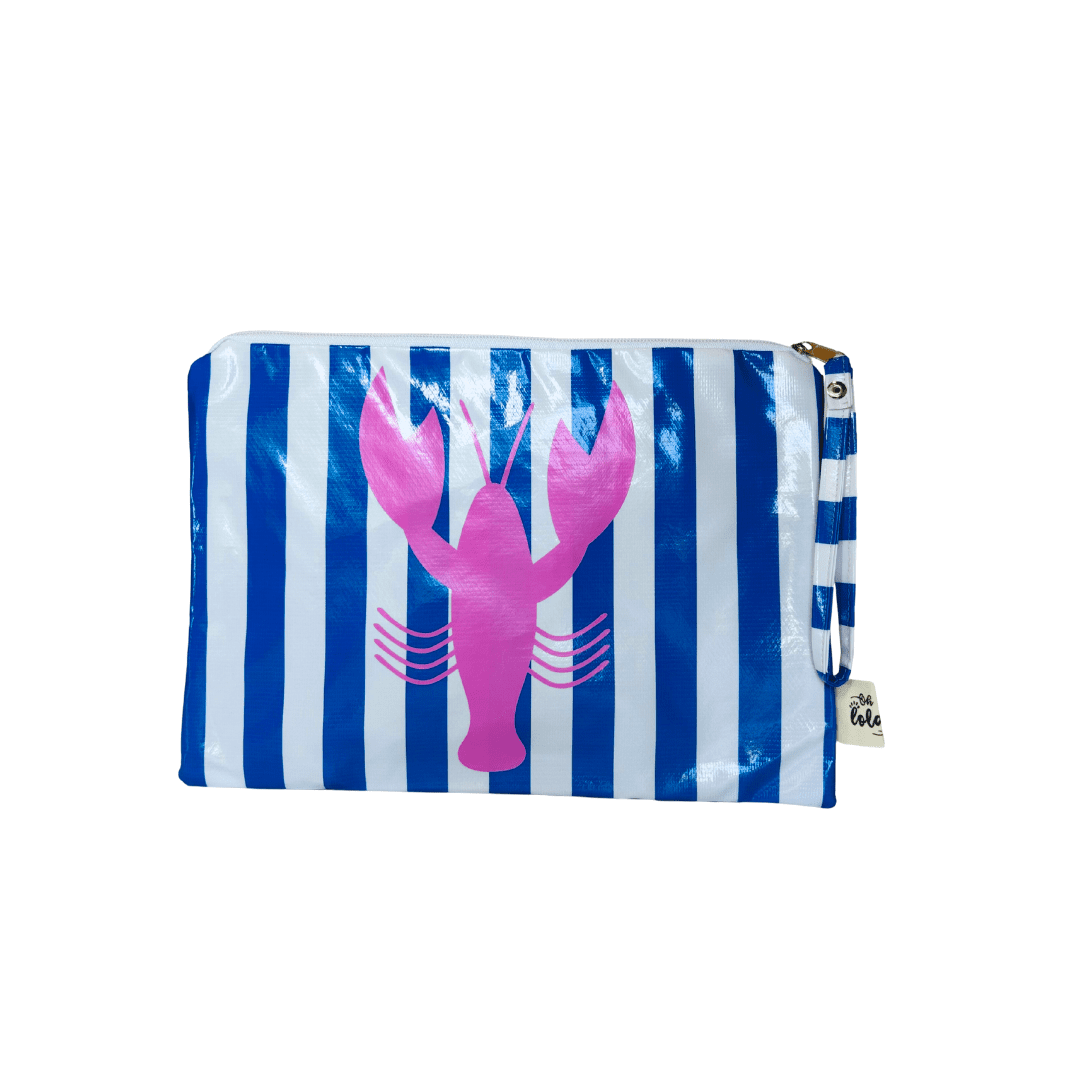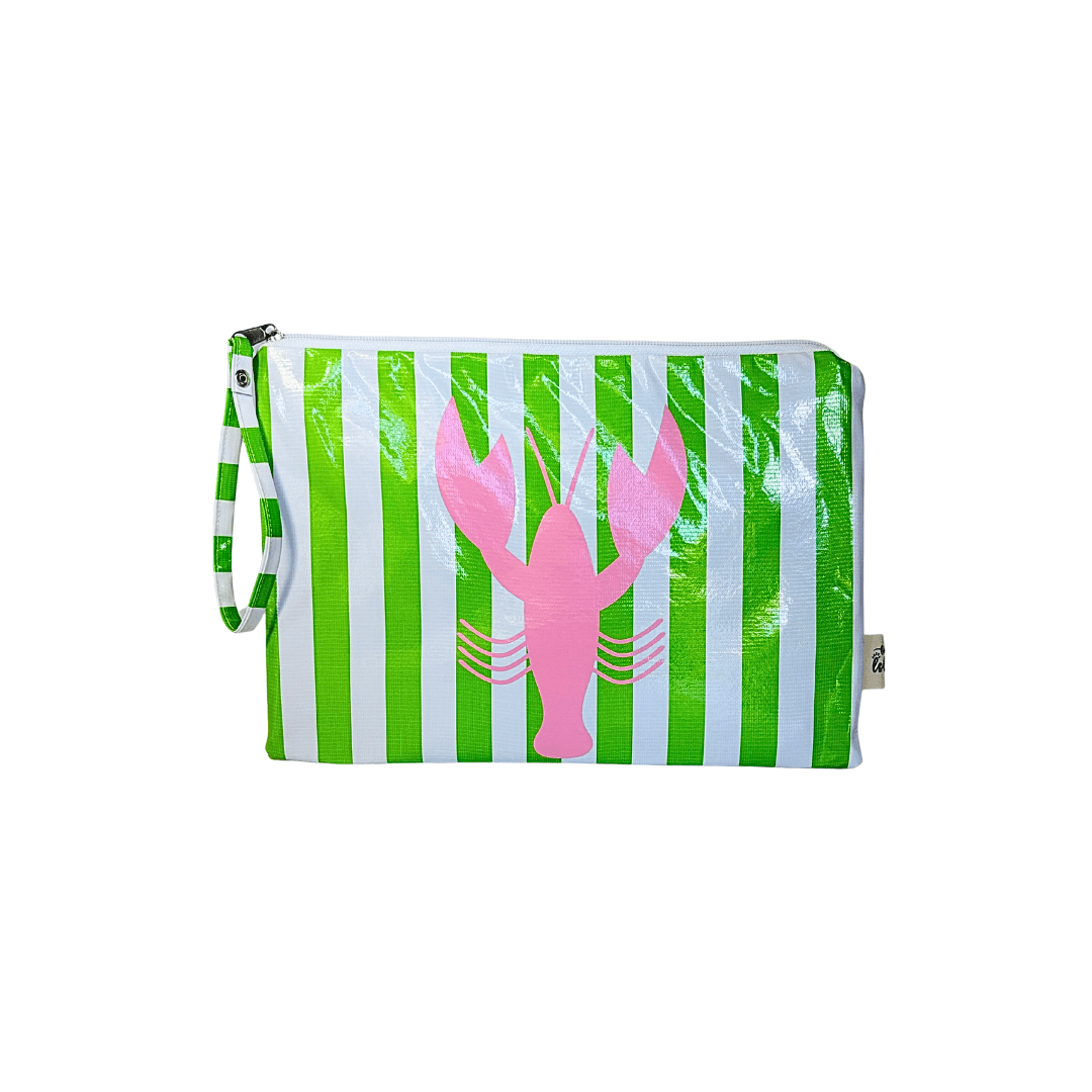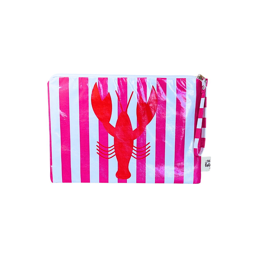 Make a splash this SS25 with the cheekiest clutch on the coast. Crafted from vibrant Mexican oilcloth and lined with water-resistant fabric, this pouch features a hand-printed lobster that brings bold beach energy to every outing.