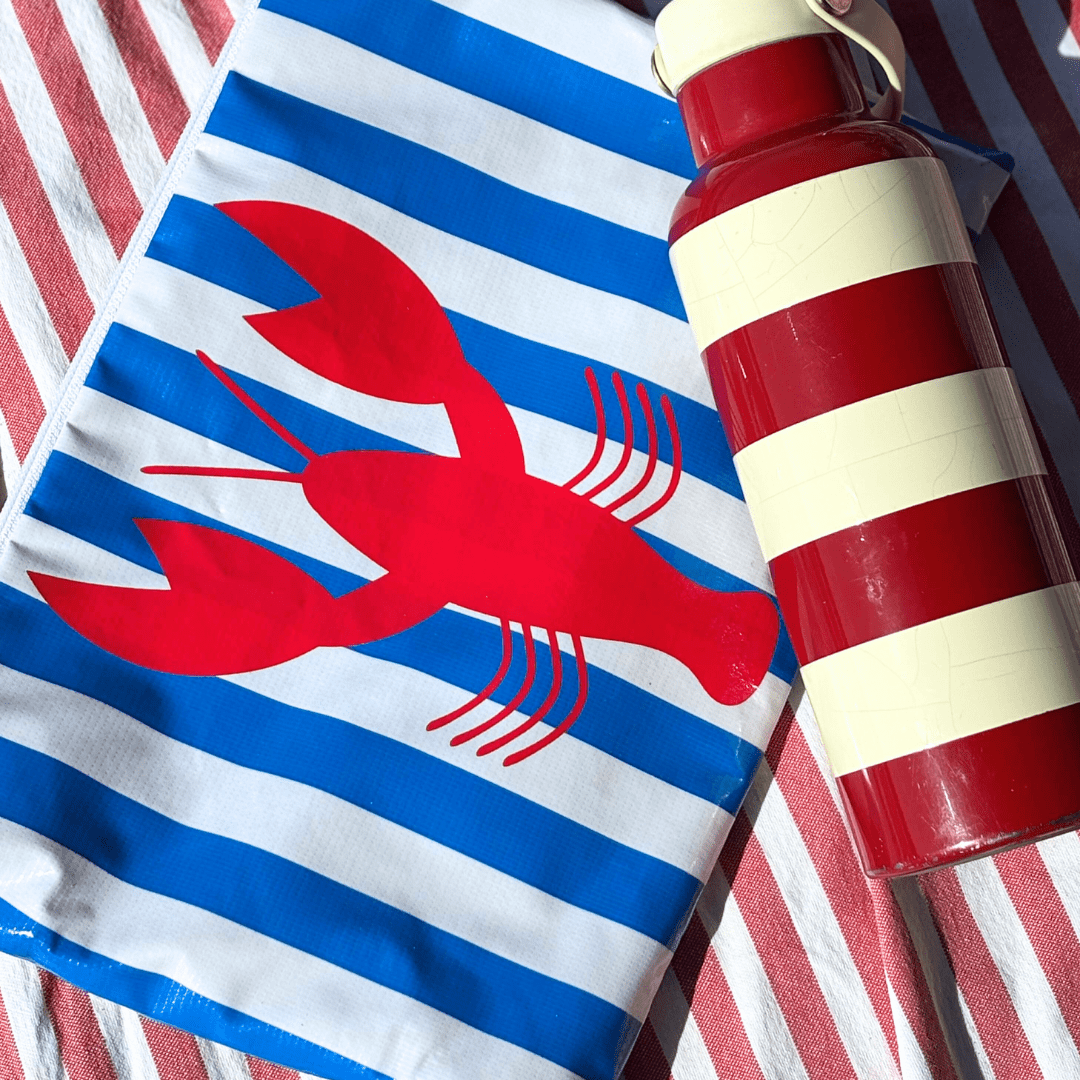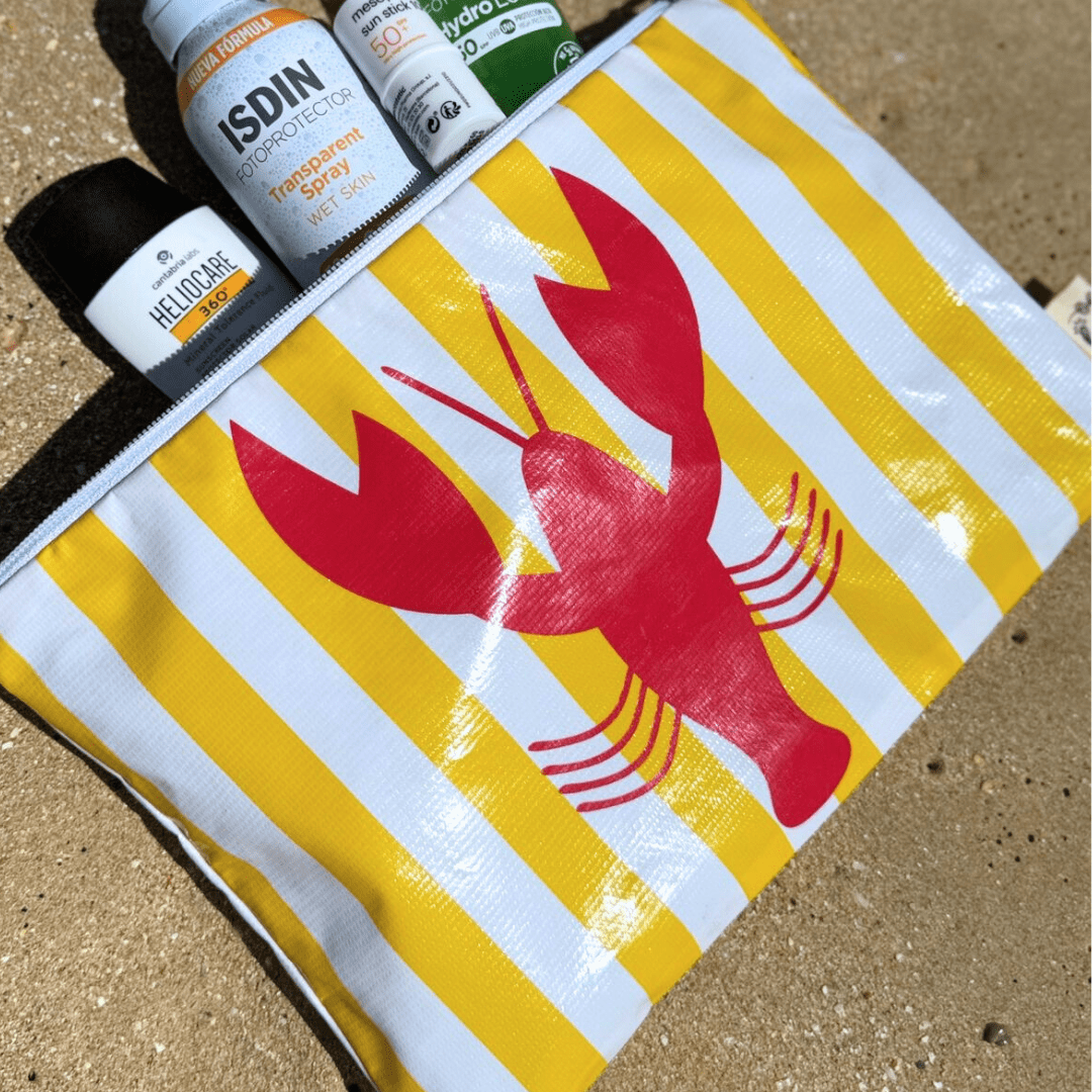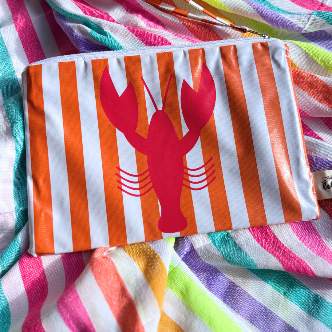 Make a splash this SS25 with the cheekiest clutch on the coast. Crafted from vibrant Mexican oilcloth and lined with water-resistant fabric, this pouch features a hand-printed lobster that brings bold beach energy to every outing.